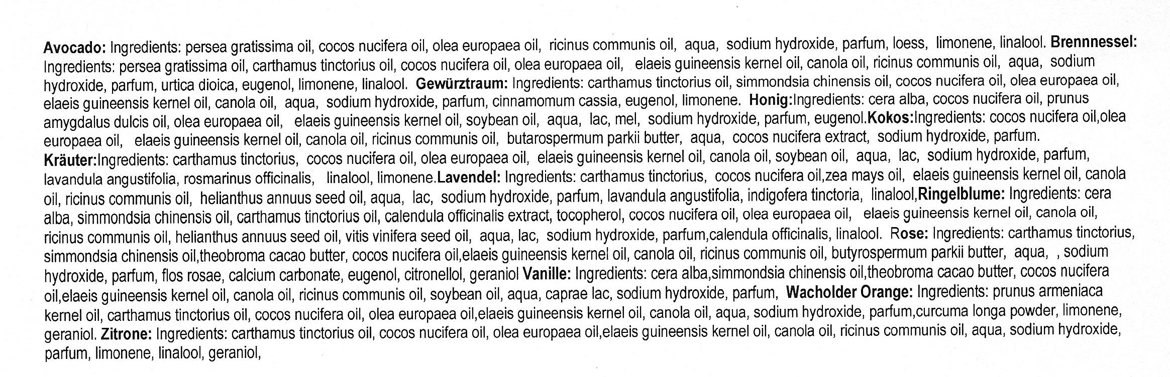 sodium, hydroxide, parfum, limonene, geraniol, Seifenwürfel
